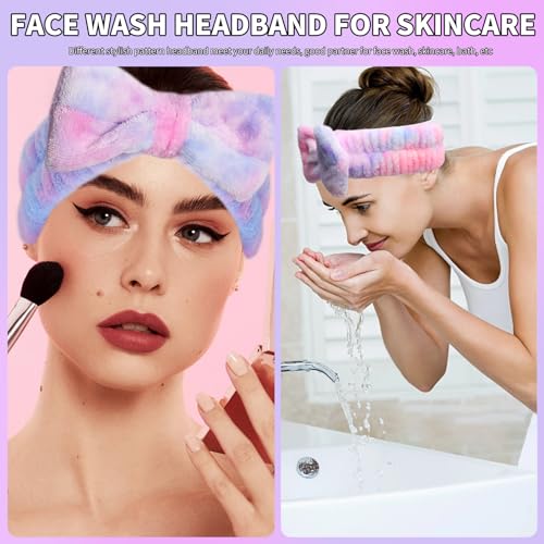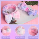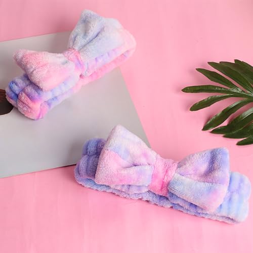 2Pcs spa headbands for washing face: 2 pieces of face wash headbands for keeps hair out of her face, available in 2 different bright pink purple tie dye colors combined with fluffy texture, give you wonderful wear experience. Nice combination in daily life, and also a creative gift choice for girl, friend, mother, etc.