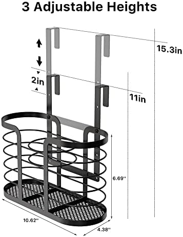 Dimensions: basket sizes are L 10.6″ x W 4.3″ x H 6.6″, hanging length of hair dryer holder from 11″-15″, fits over 1″ thick cabinet doors, the gap between the door and the frame should more than 1/8″.