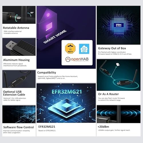 Pre-flashed Z-Stack 3.x, 0 coordinator firmware, zigbee can use ZHA in Home Assistant or use Zigbee2MQTT,based on TI EFR32MG21 + CH9102F,+20dBm output gain